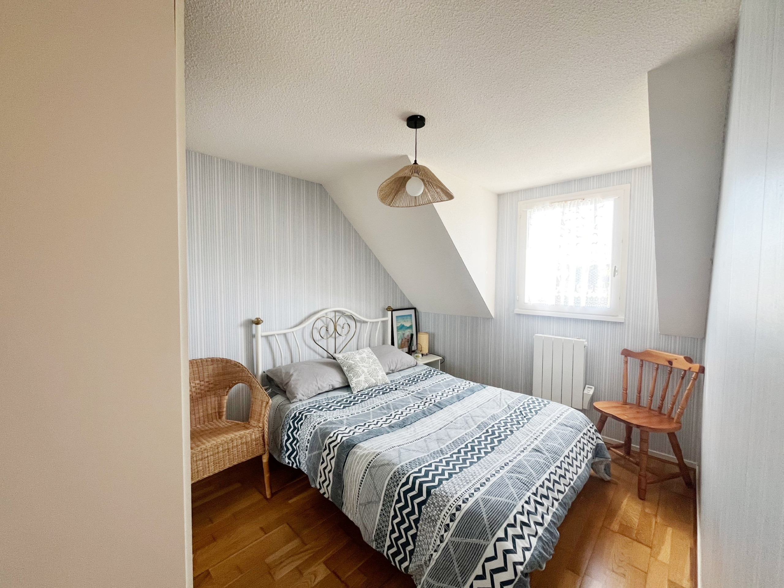 - Une chambre avec lit double de 140 cm, armoire.